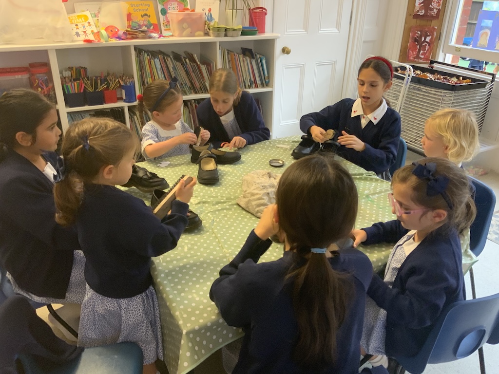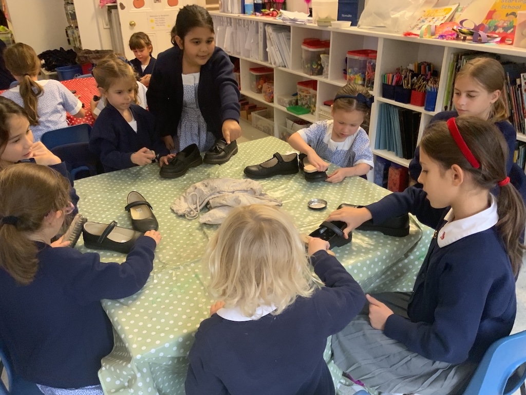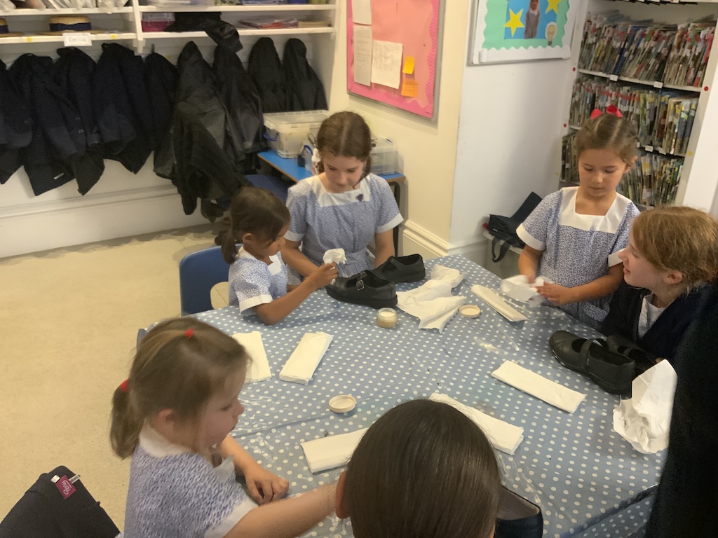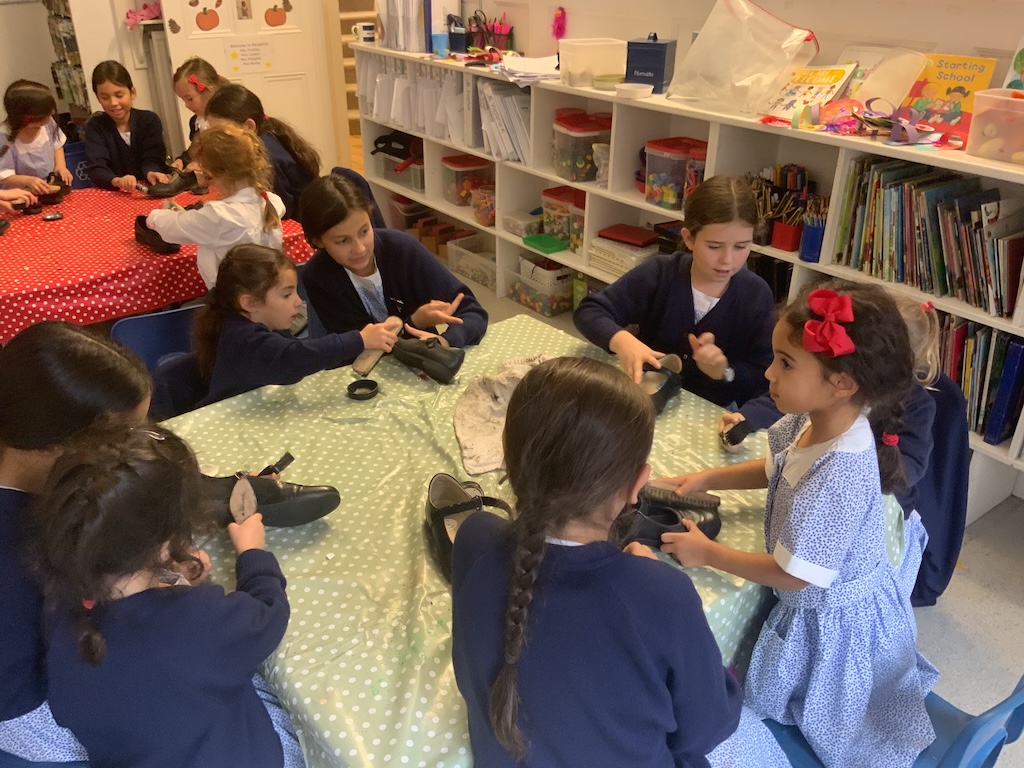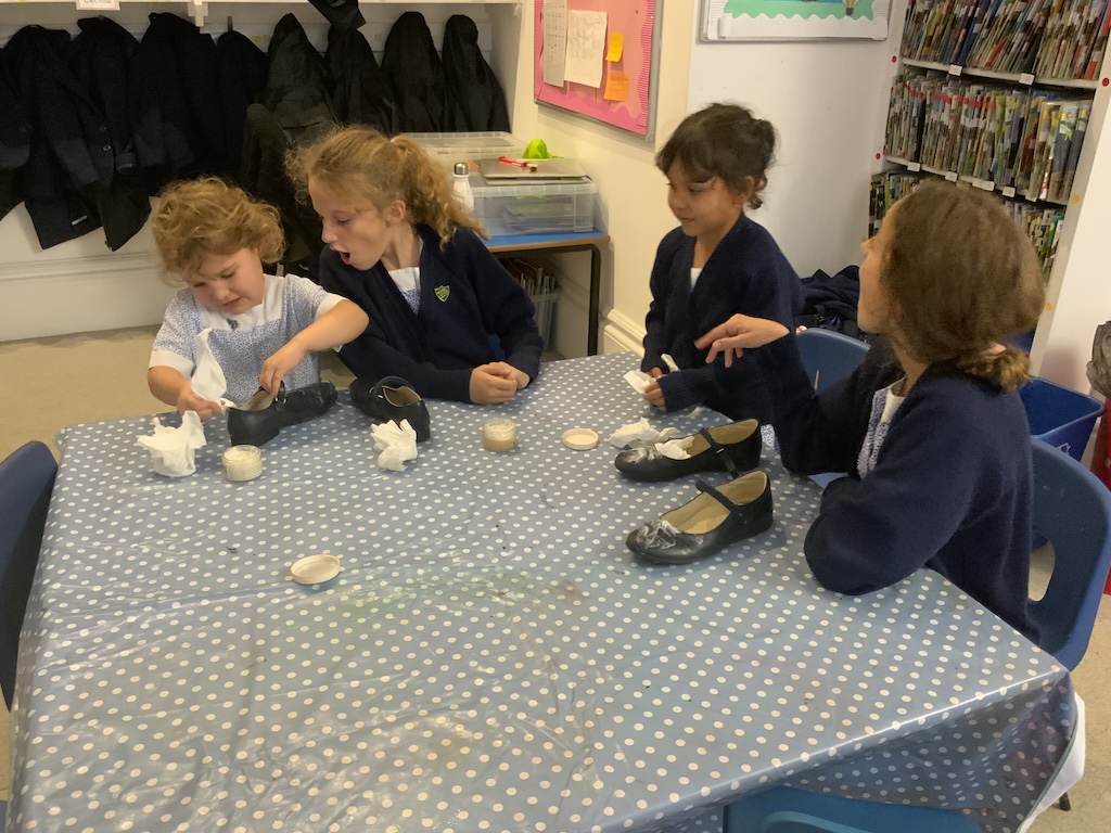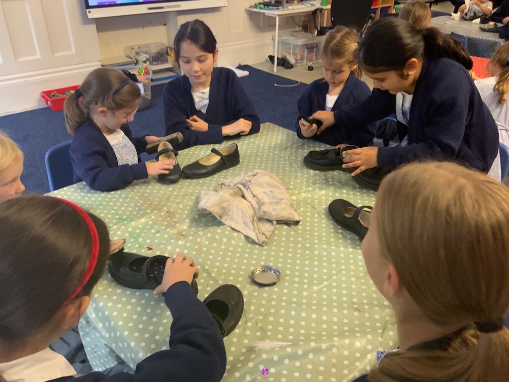 We were reading The Elves and the Shoemaker last week in Reception and on Friday the girls helped to polish their big sisters shoes!
