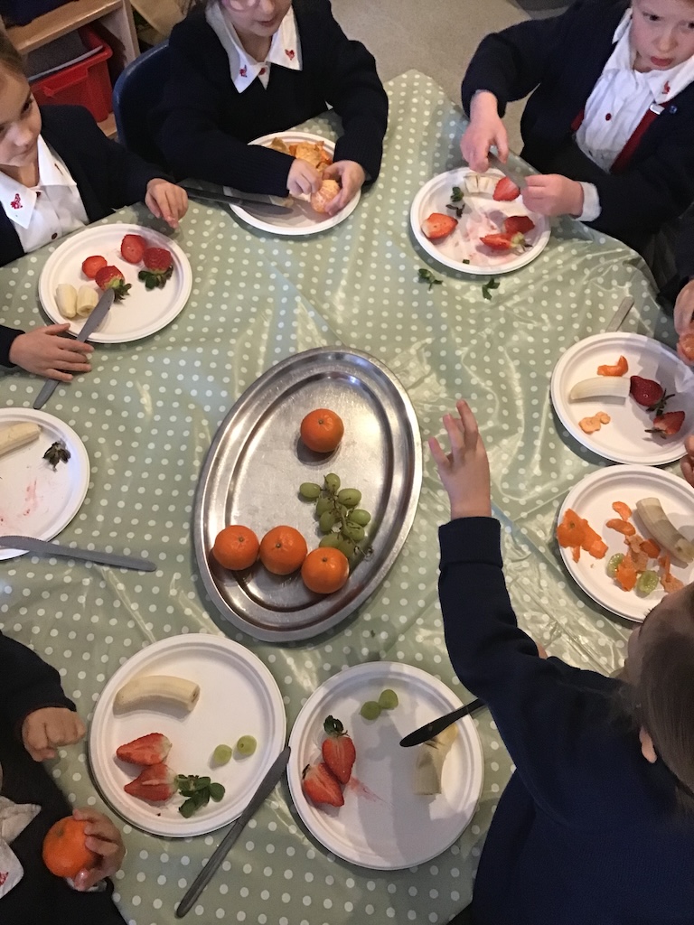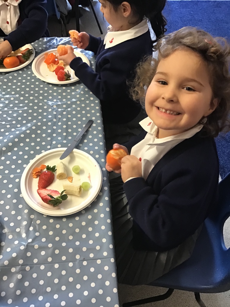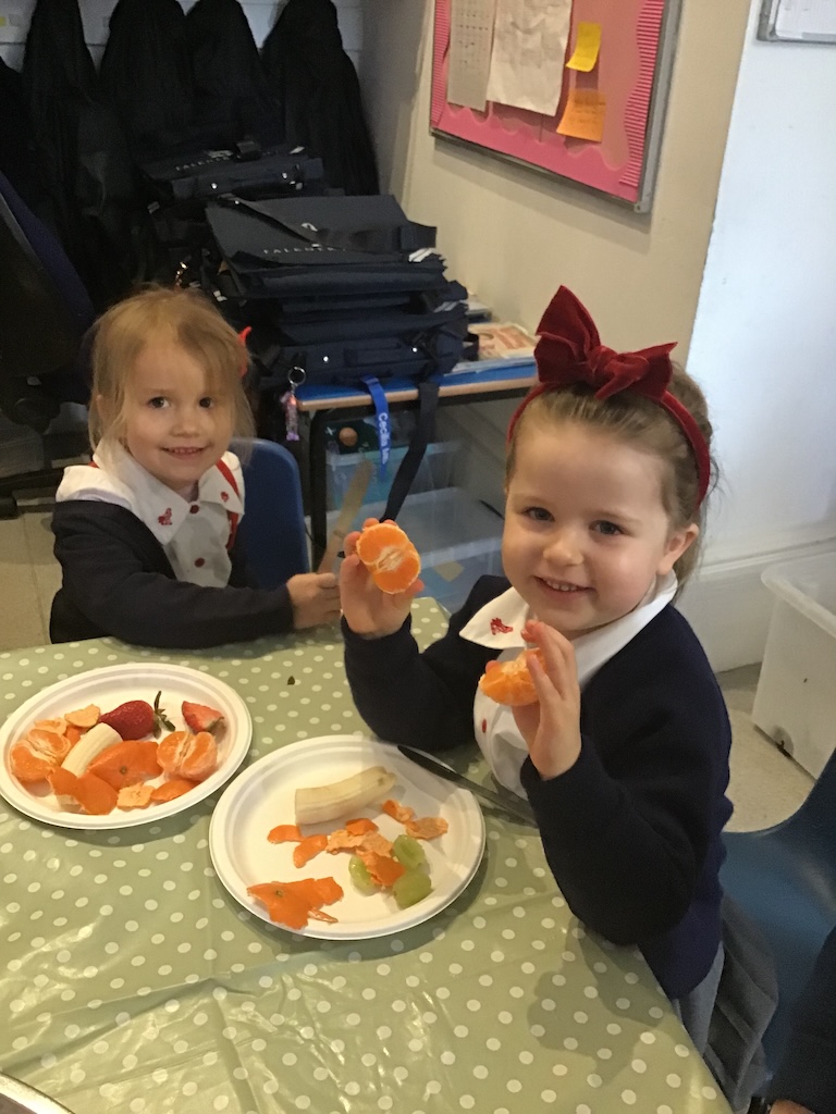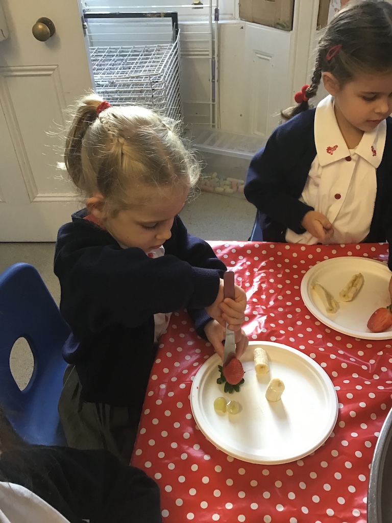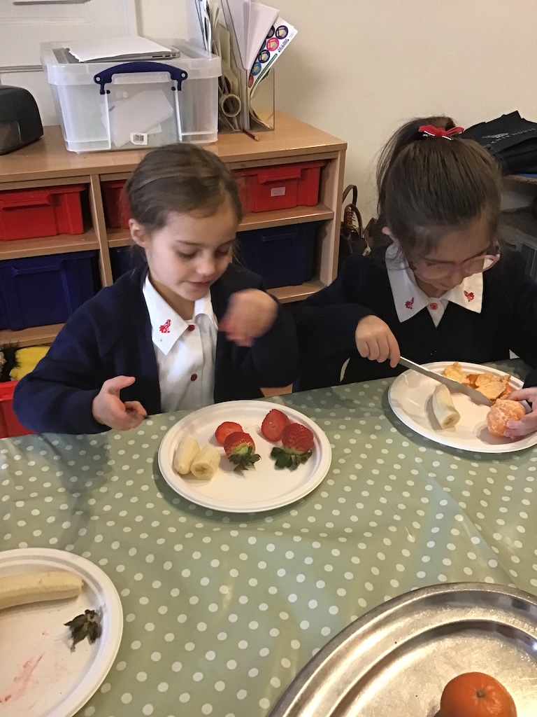 Reception were learning about halving today in maths by cutting fruit!