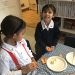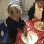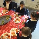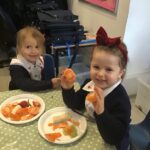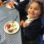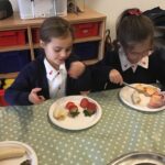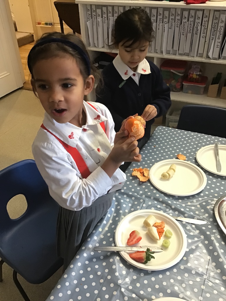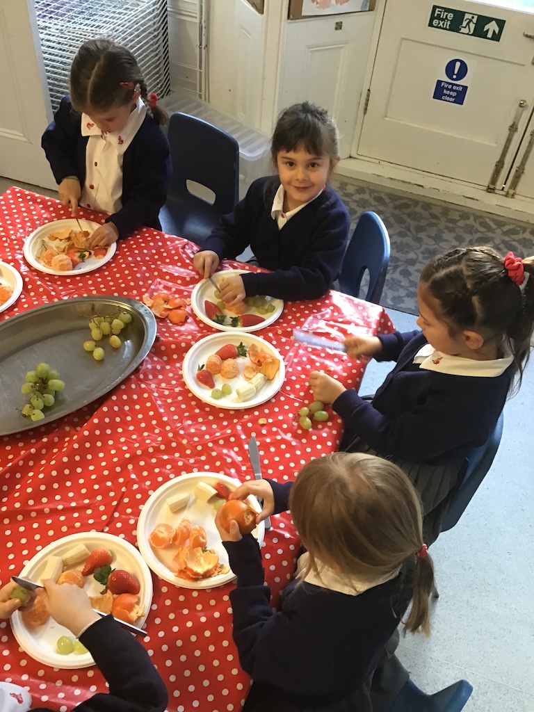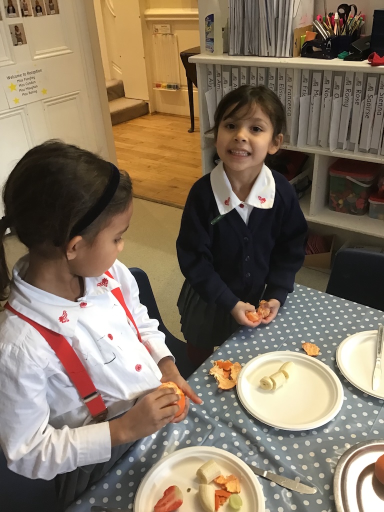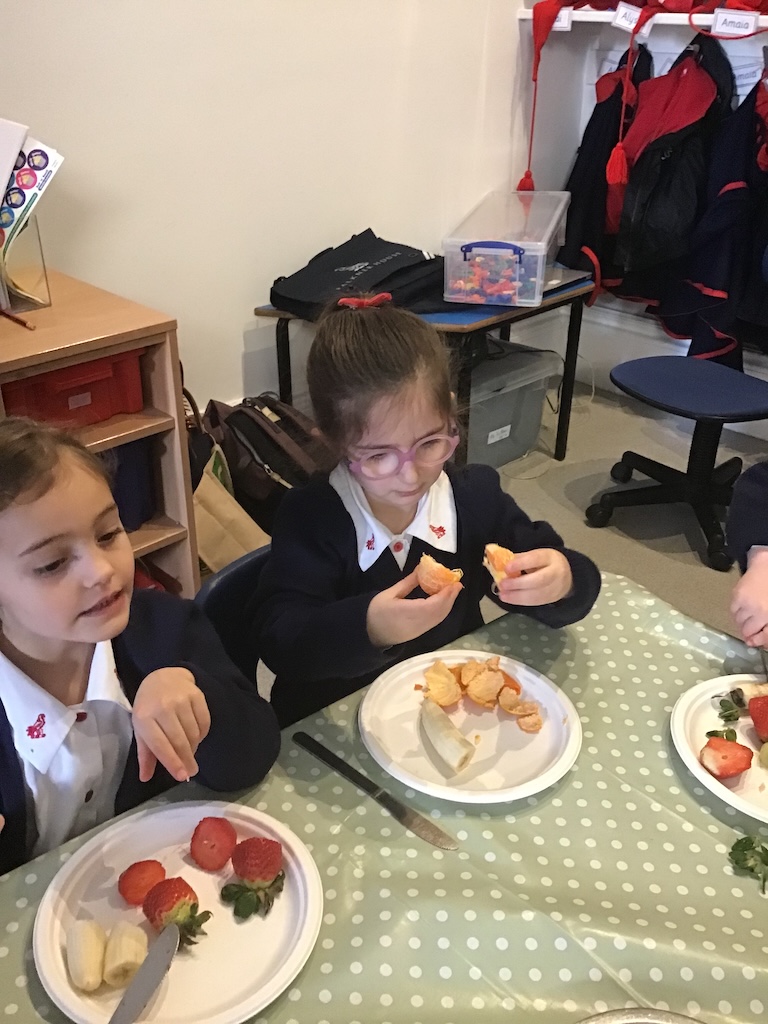 Reception were learning about halving today in maths by cutting fruit!