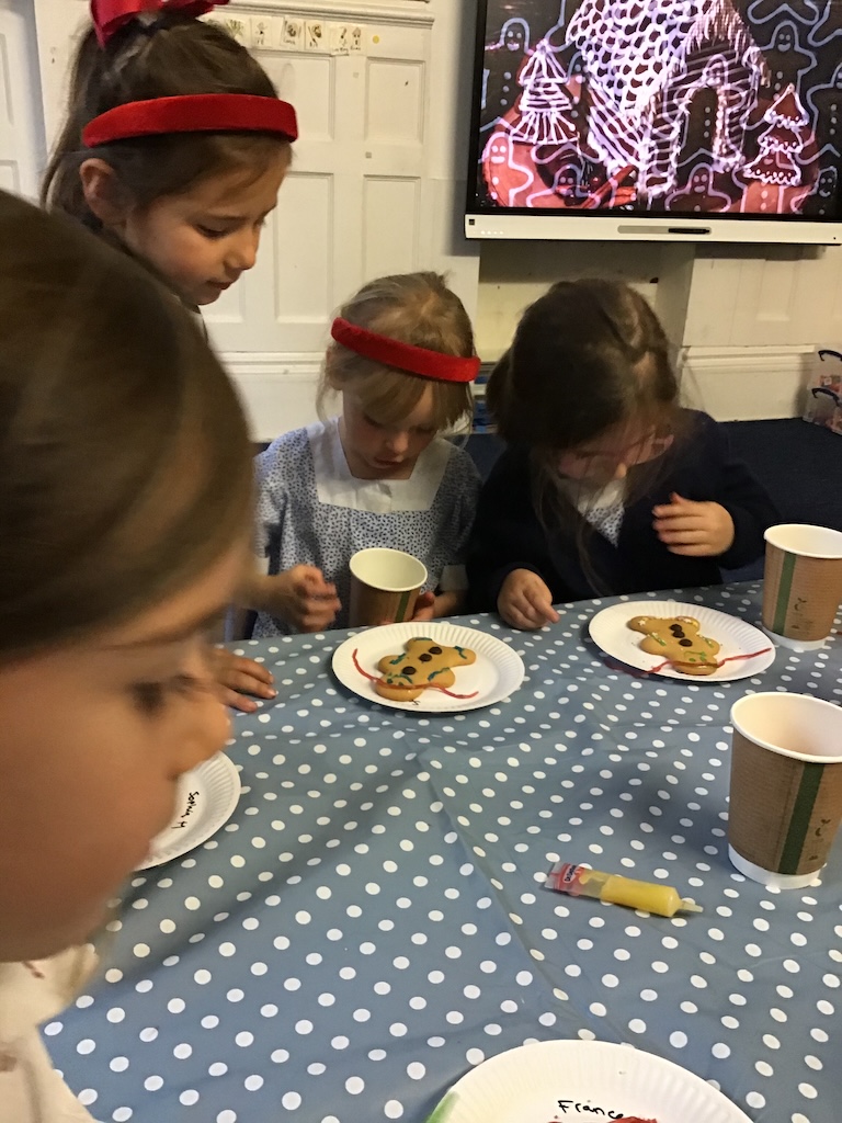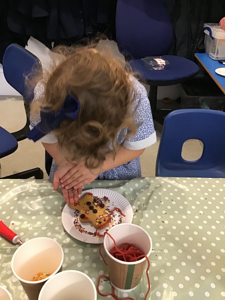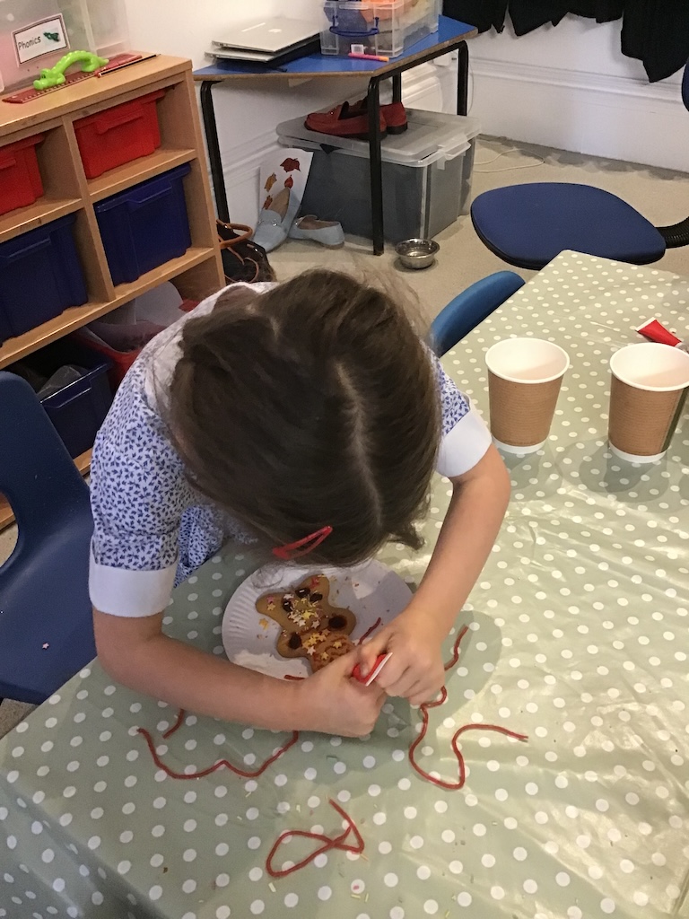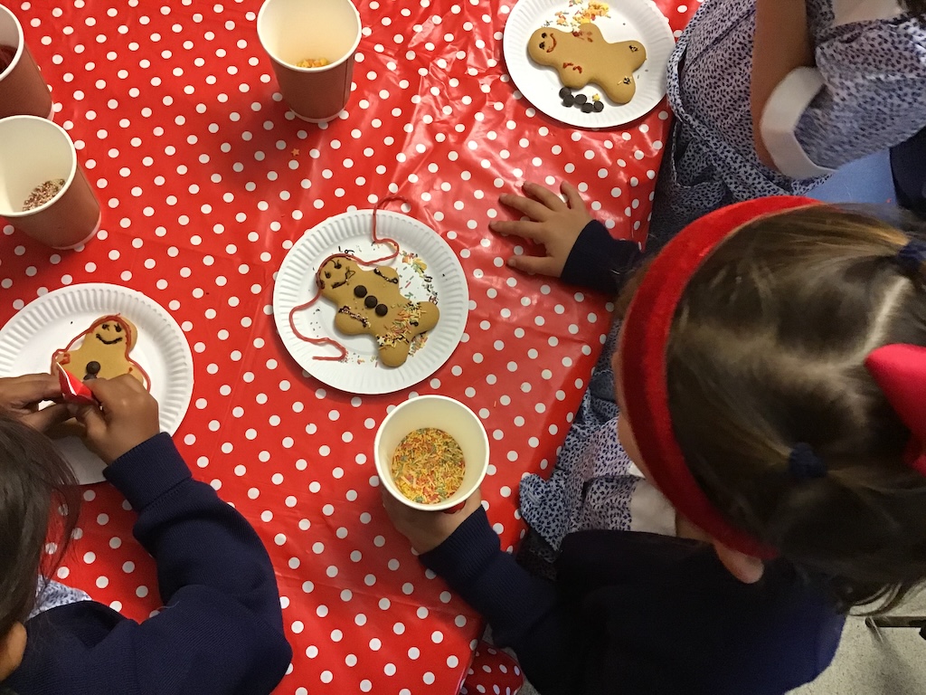 Reception decorating gingerbread last Friday for our Gingerbread Man week!