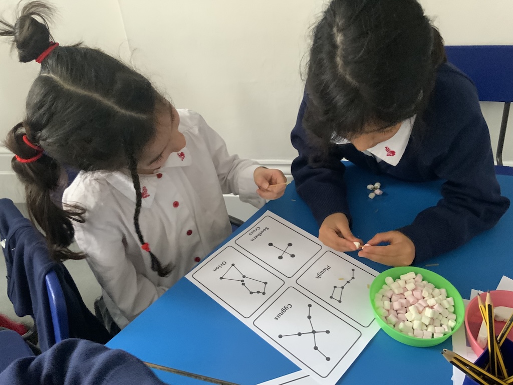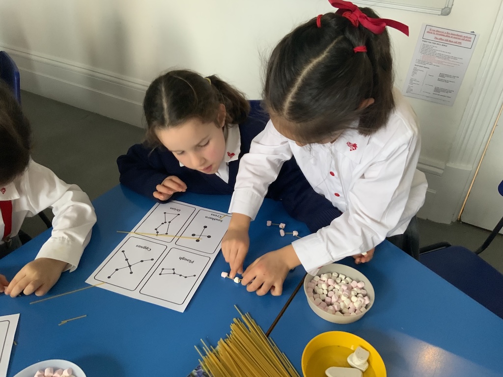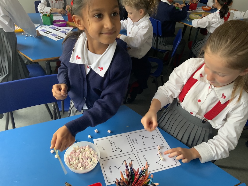 This week the year 2’s have been learning about constellations in science. They had lots of fun using marshmallows and dry spaghetti to make their very own constellations with their learning partners.