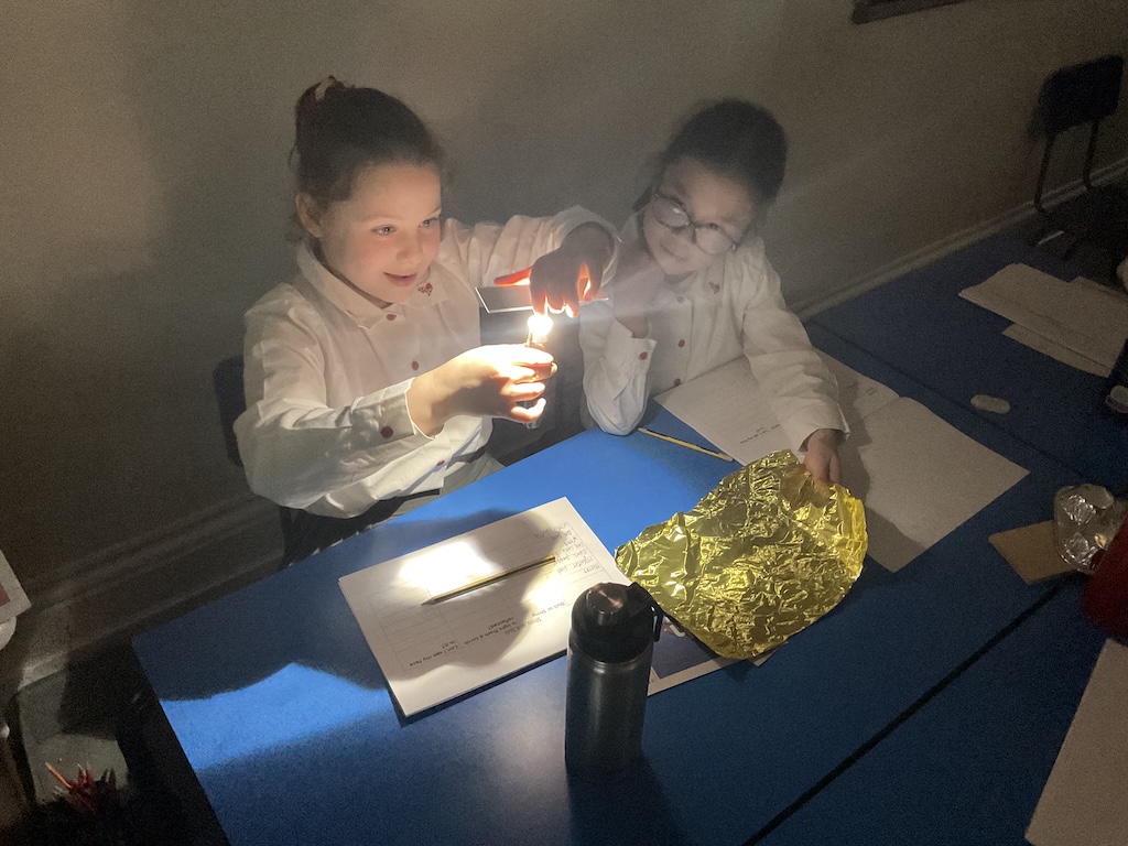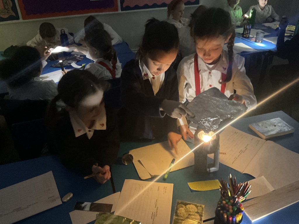 Year 3 have been learning about light and shadows. We carried out an experiment to investigate whether objects are shiny or dull and how this affects how light is reflected.