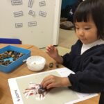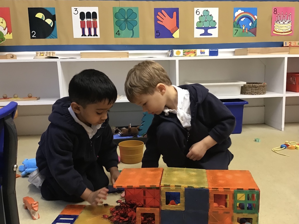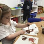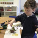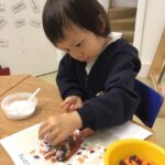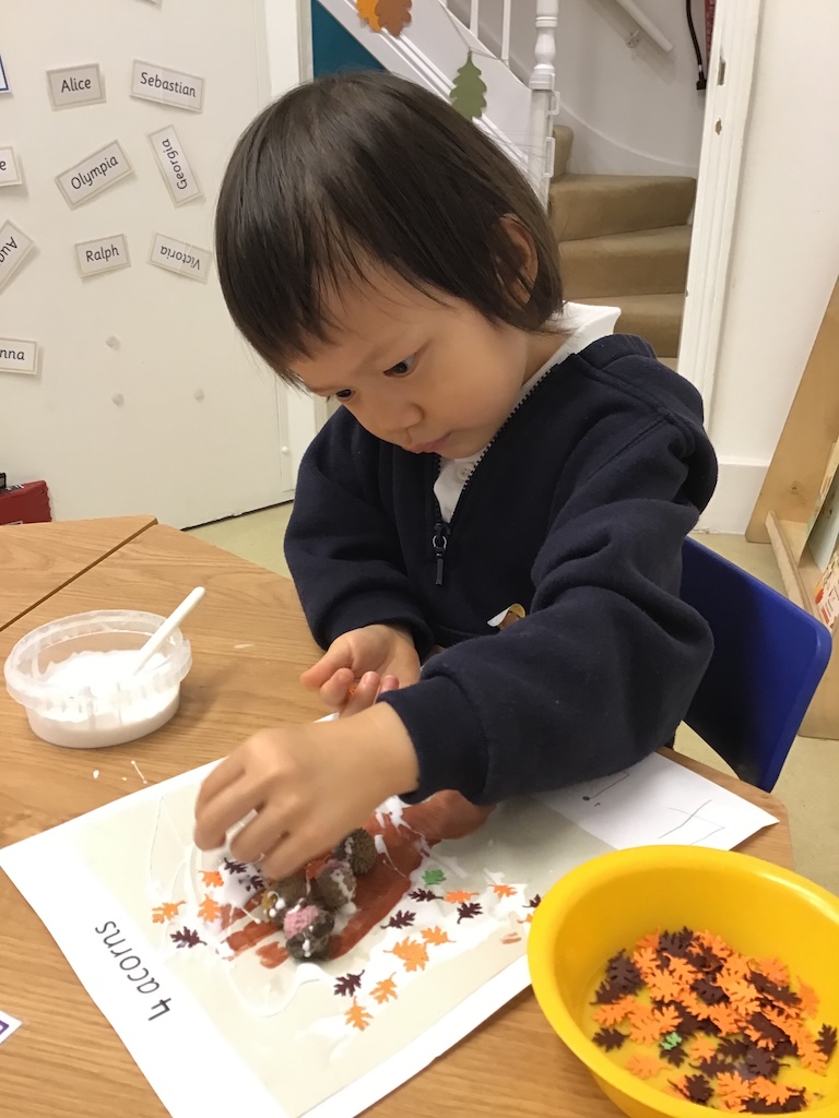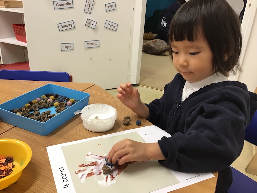 This week in Nursery we continued exploring the natural treasures, such as horse chestnuts and alder cones we can find in the park, woods or our gardens. The children enjoyed the sensory experience of sorting and counting some of these natural brown treasures in our discovery tray.