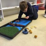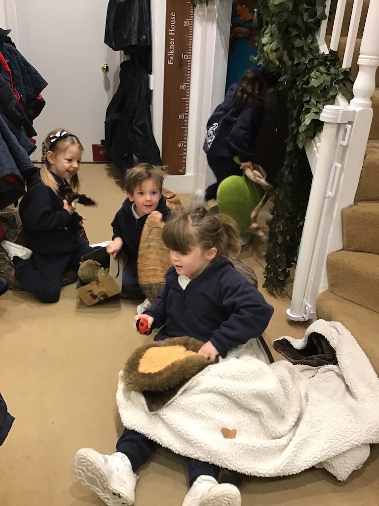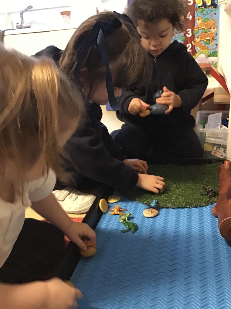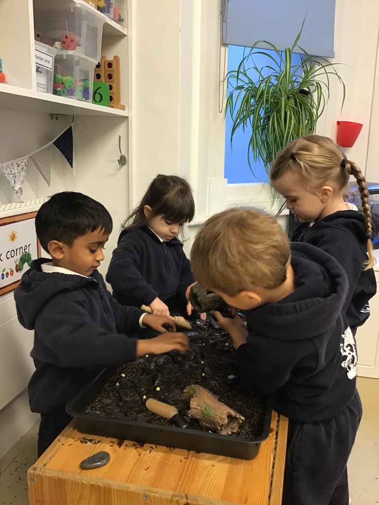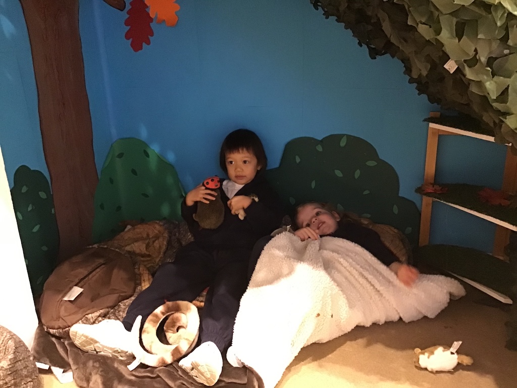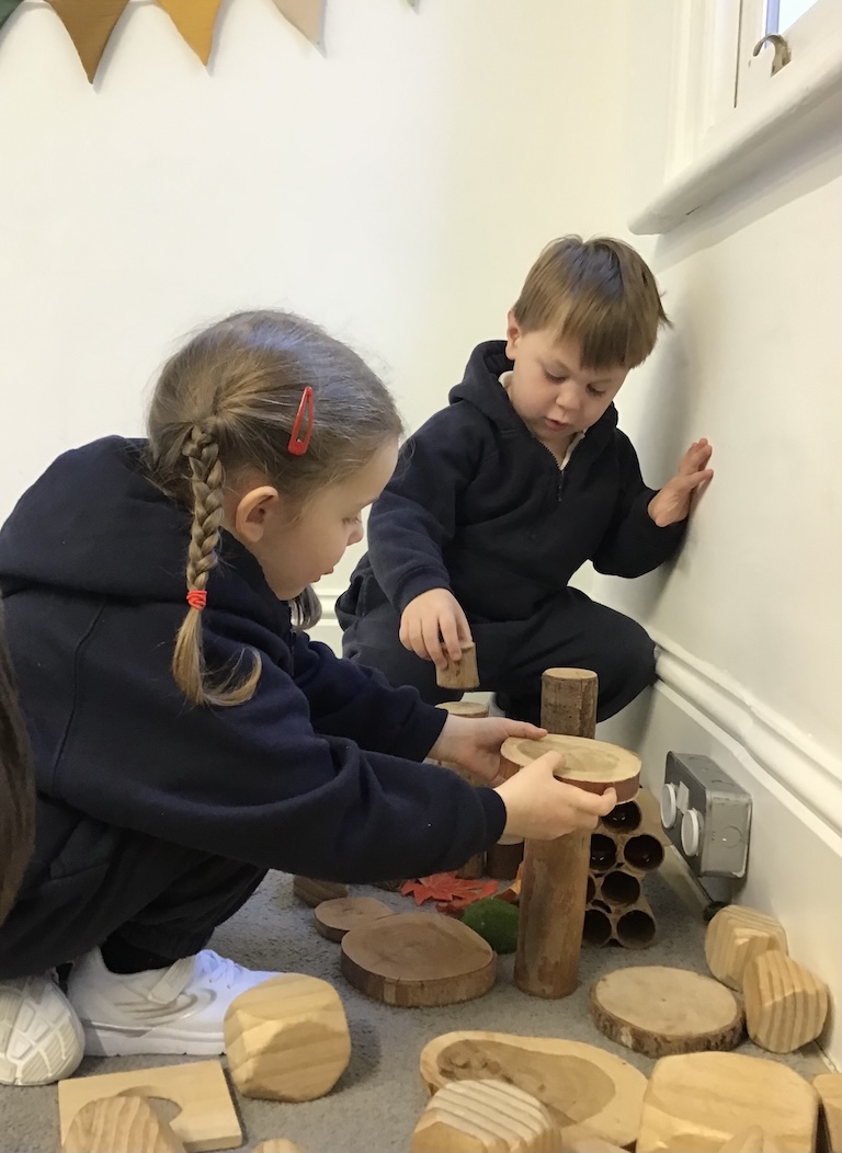 We enjoyed matching the animals, minibeasts, reptiles and amphibians with their hibernating habitats and making and finding homes for the hibernators in woods under the stairs.