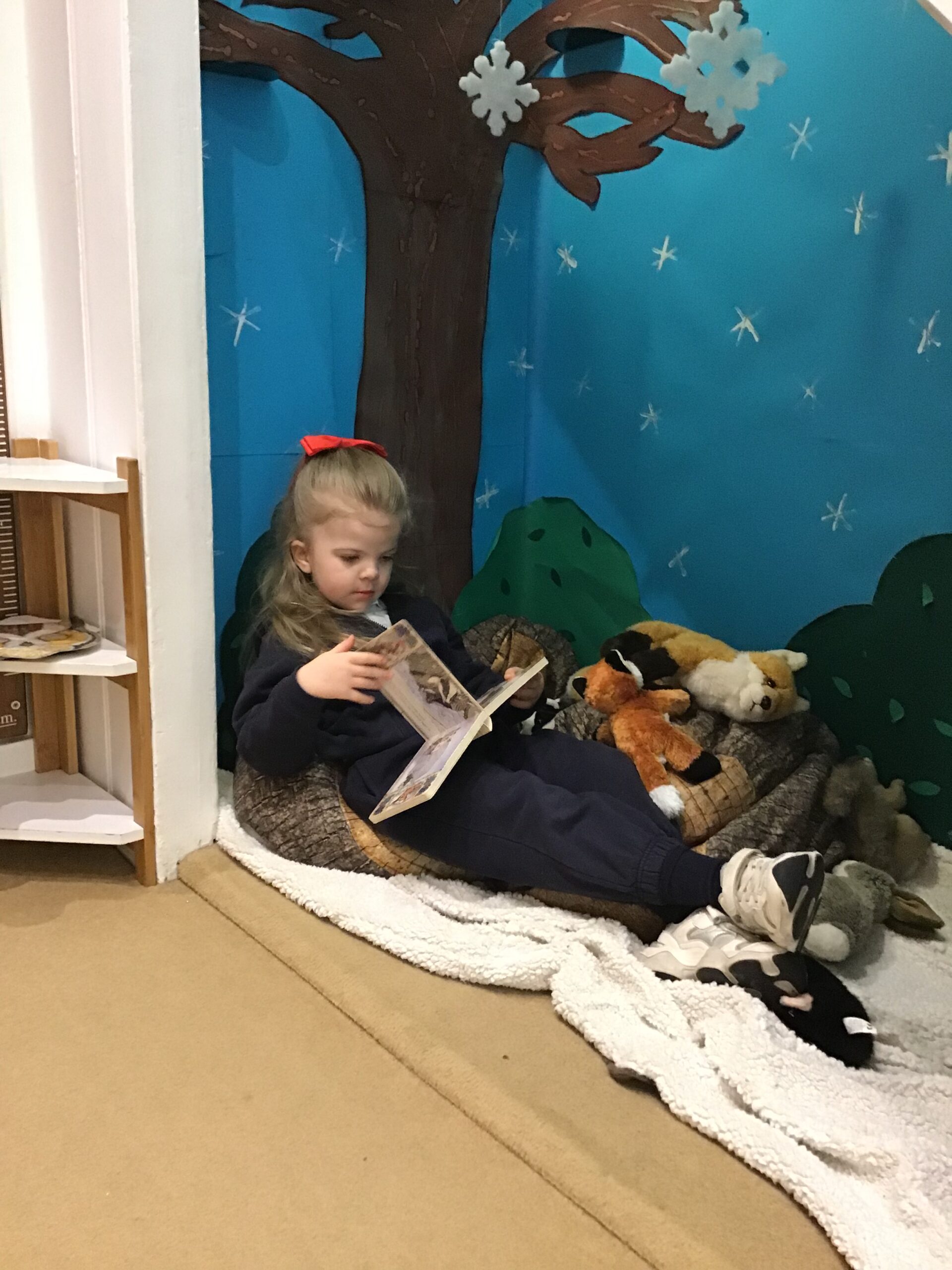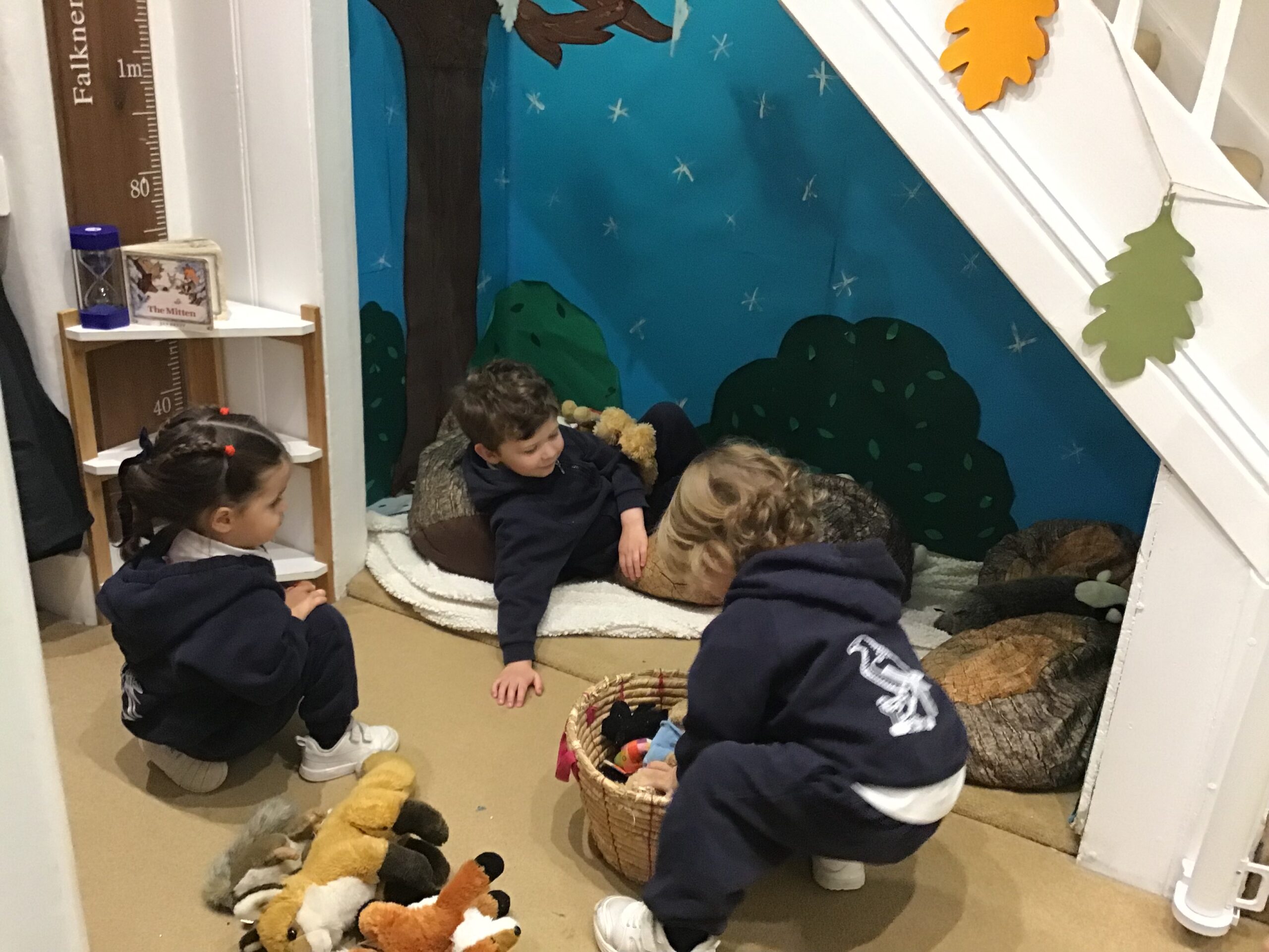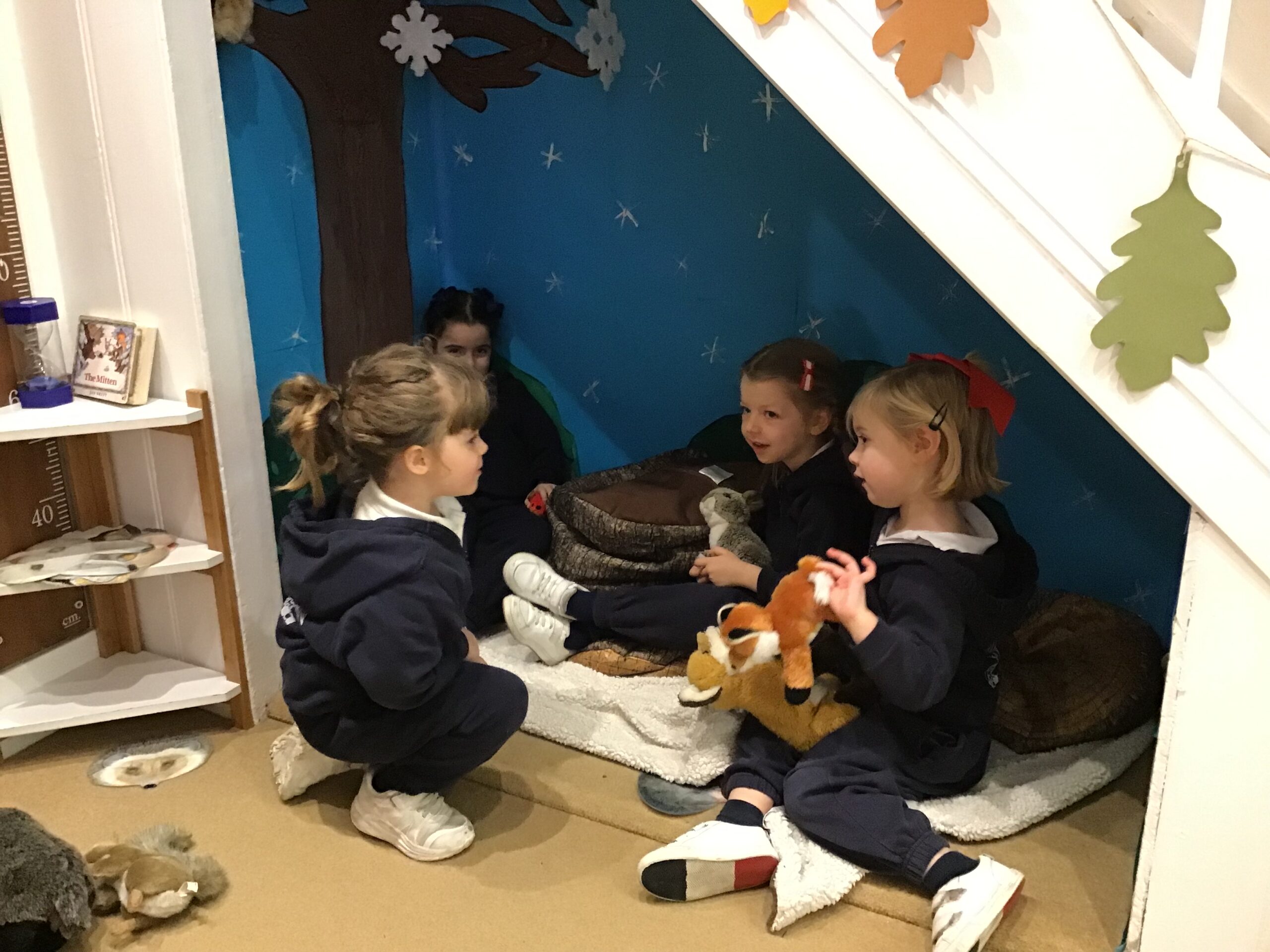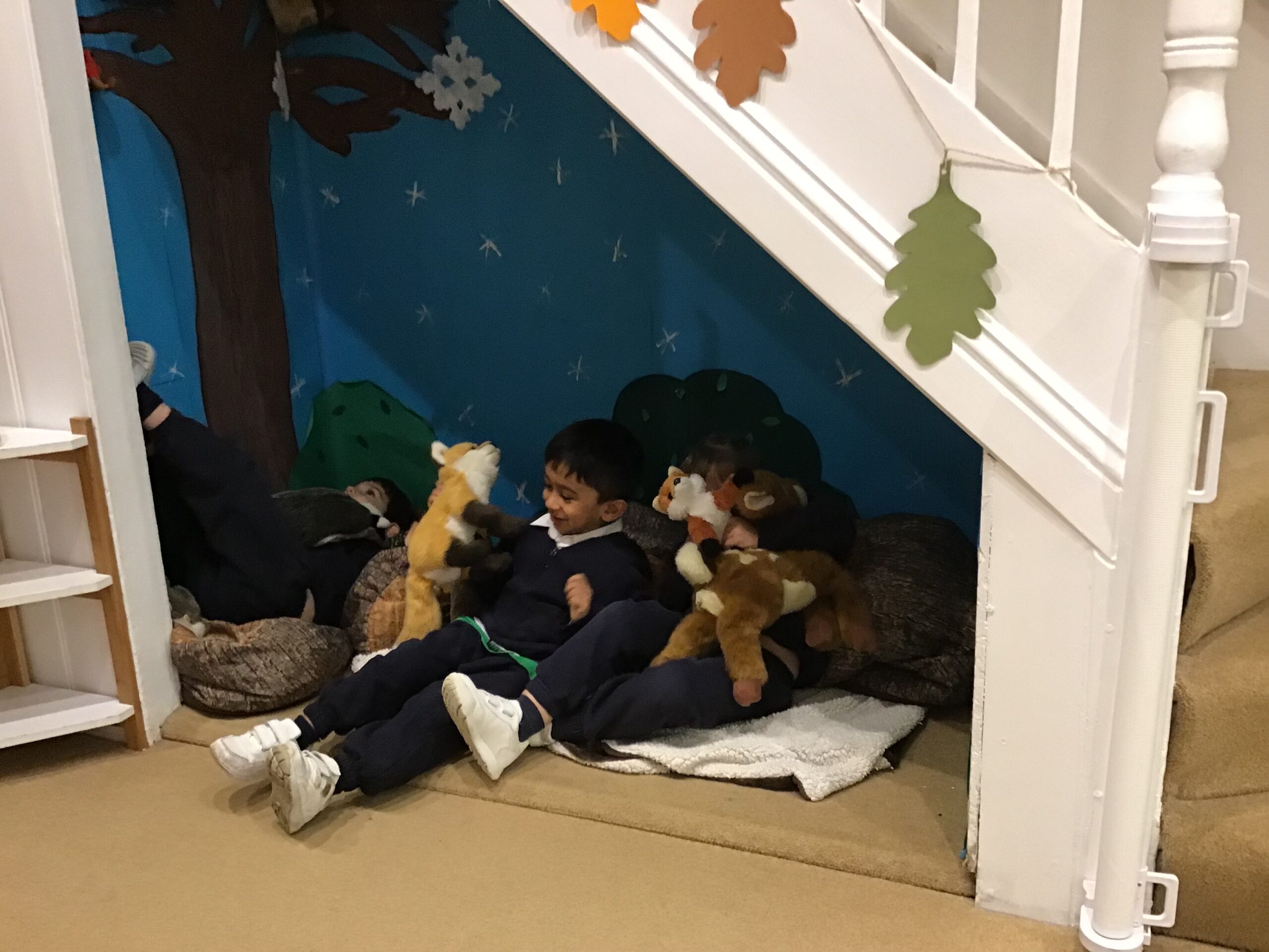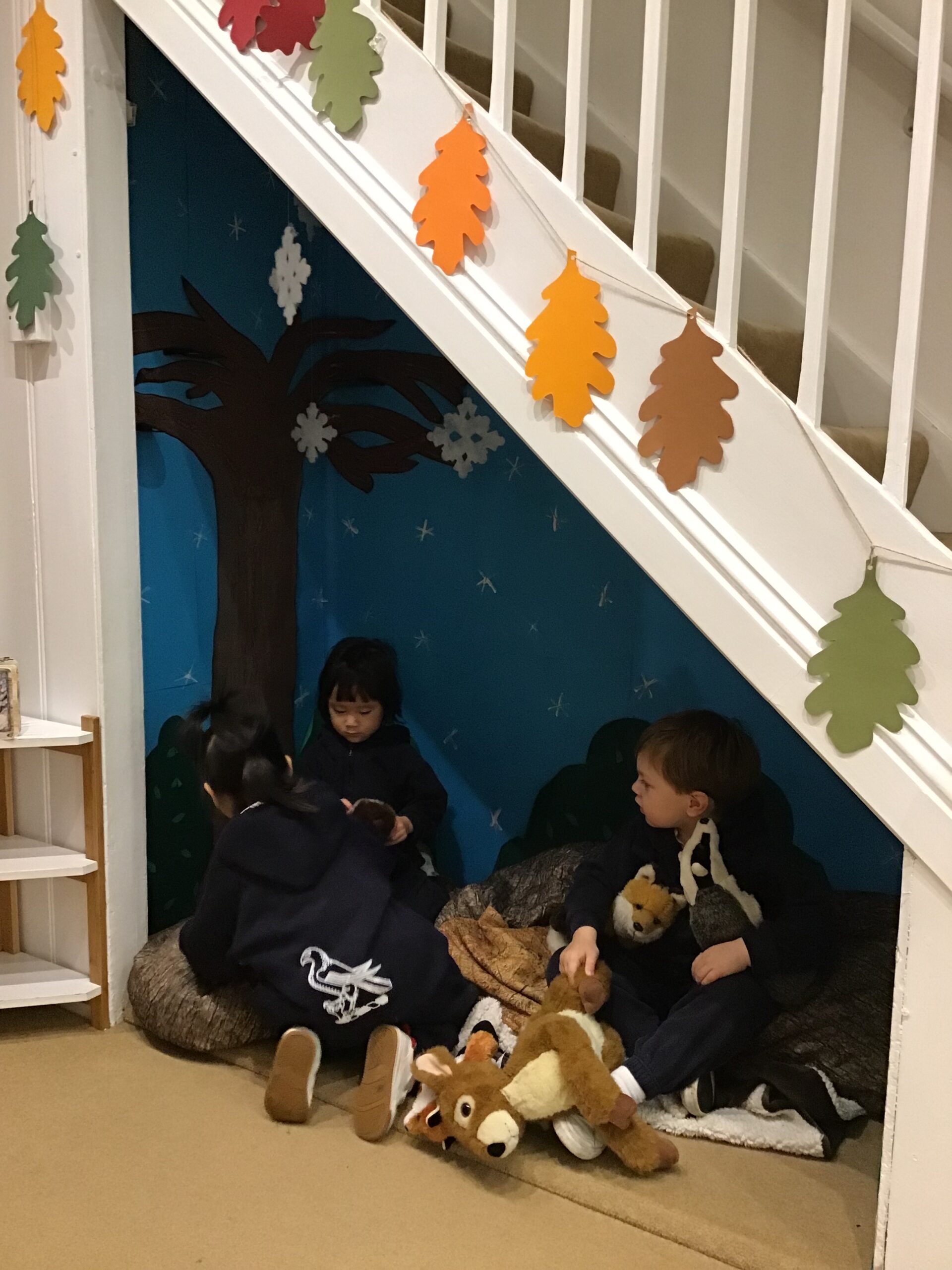 In the winter woods, under the stairs the children enjoyed playing with animals we see out and about during the winter months.