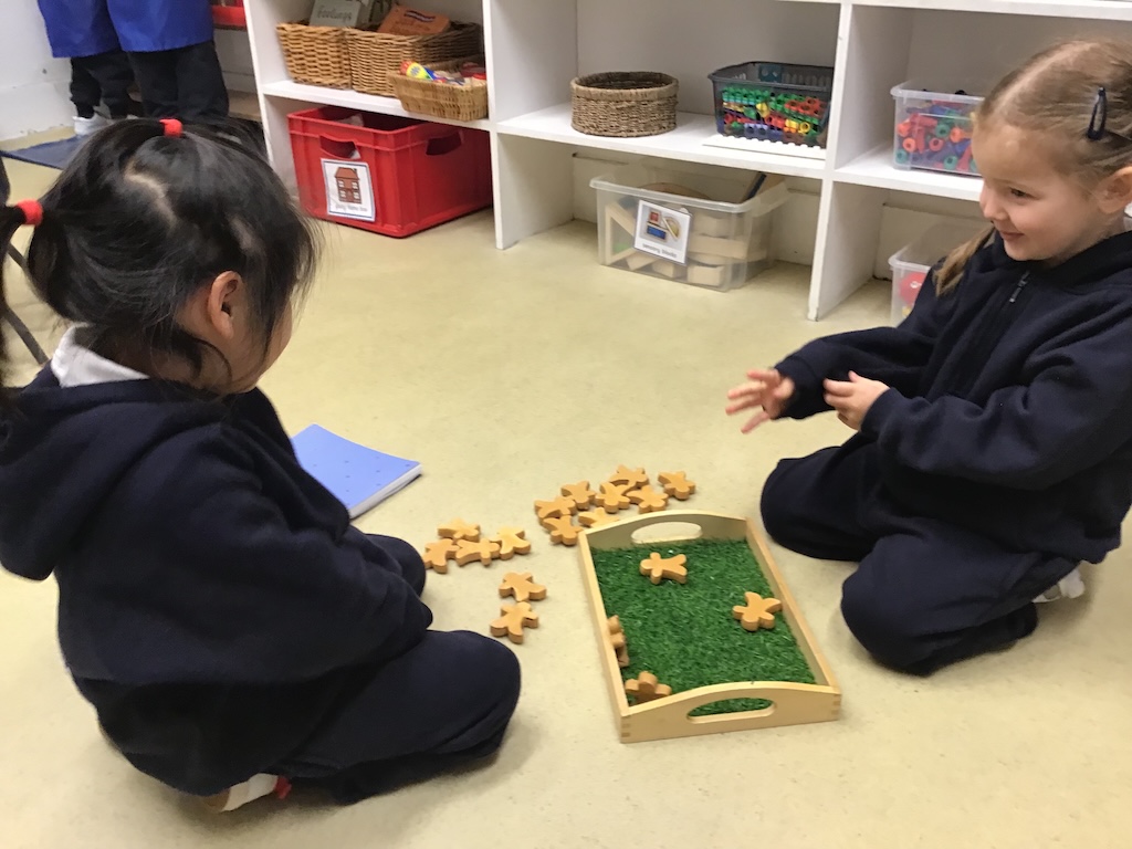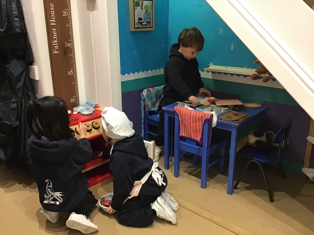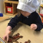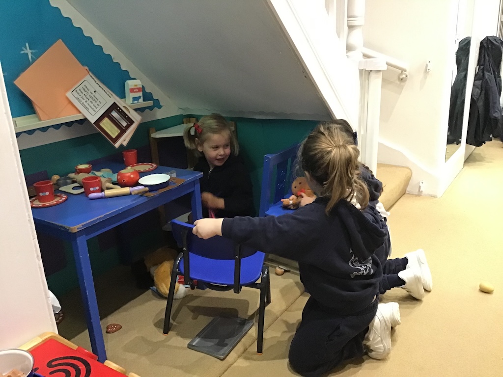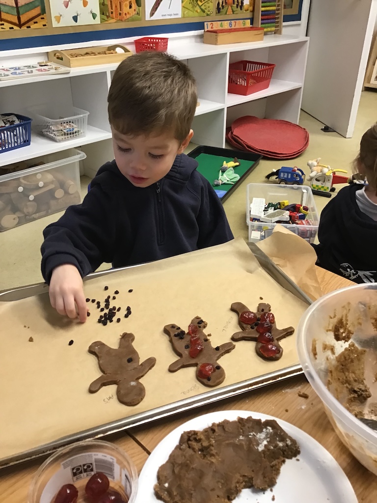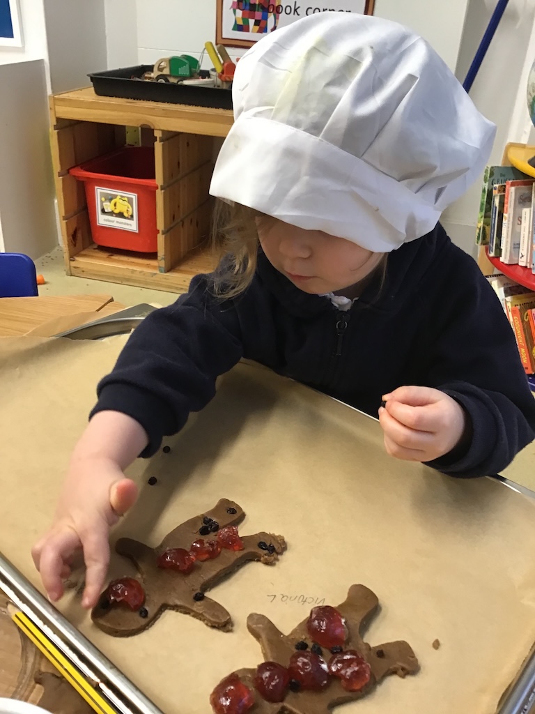 The children retold and re-enacted the story of ‘The Gingerbread Man’ and created their own versions in ‘the little old woman’s kitchen’ in our nook under the stairs and with the story props in the letter room.