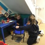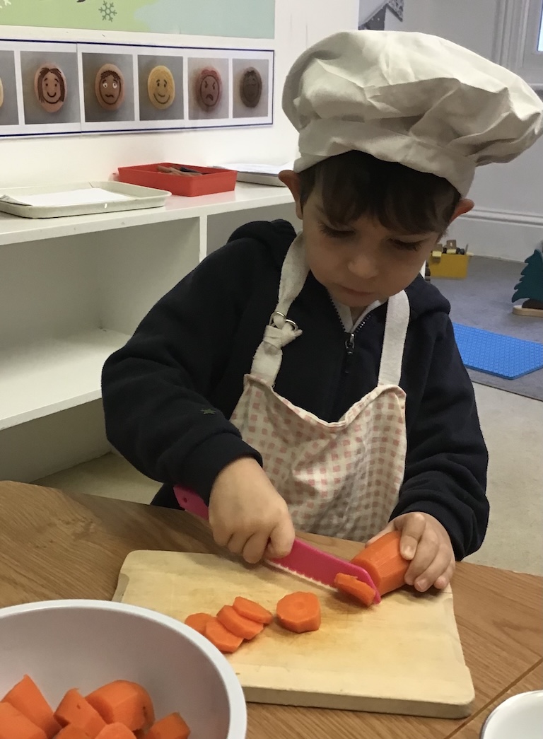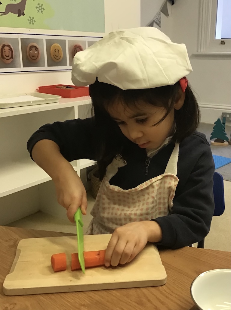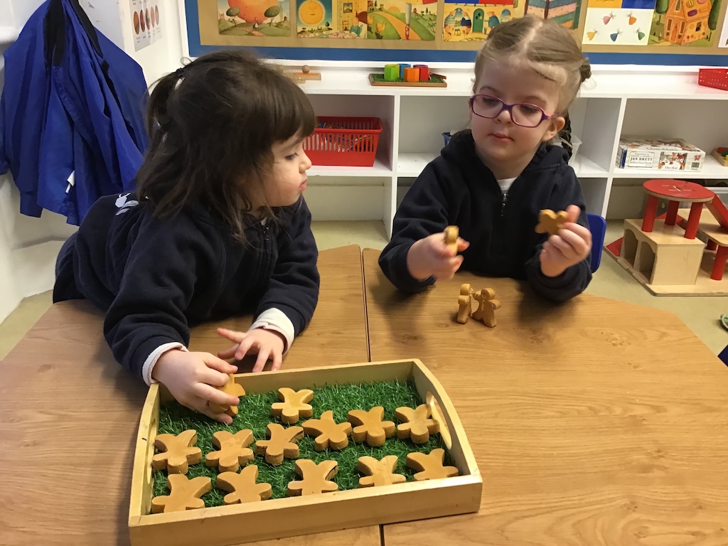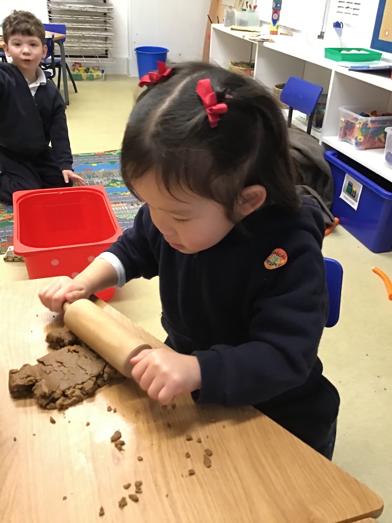 The children retold and re-enacted the story of ‘The Gingerbread Man’ and created their own versions in ‘the little old woman’s kitchen’ in our nook under the stairs and with the story props in the letter room.