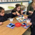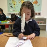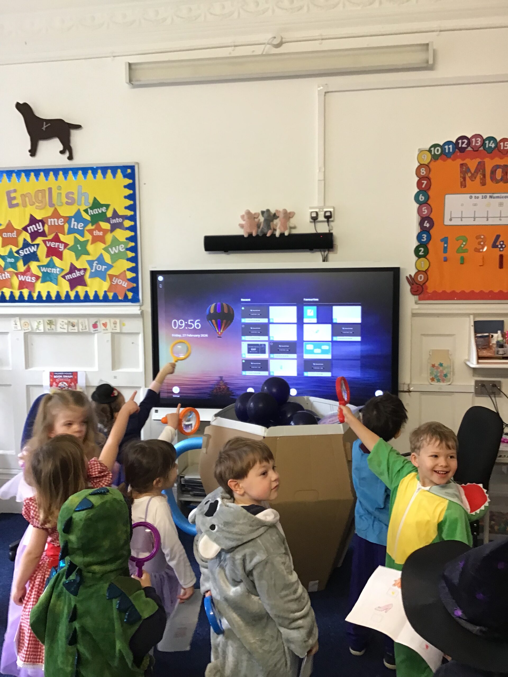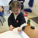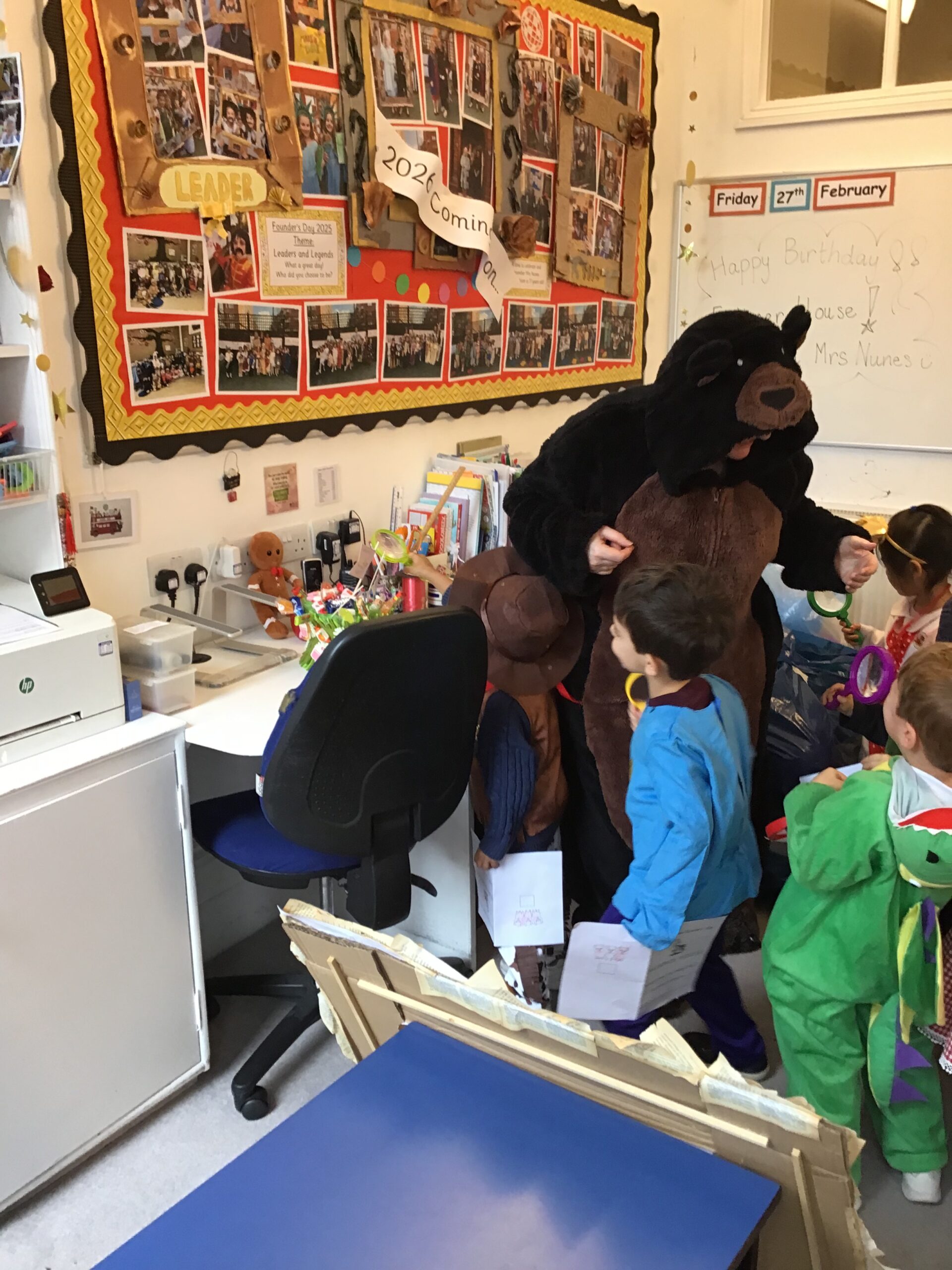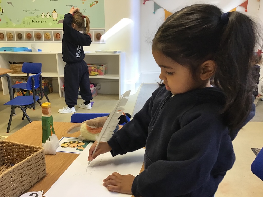 In Nursery we based our theme on our current fairy tale. The children came downstairs to see three very distraught bears. The night before we experienced breaking and entering, theft and vandalism! Thankfully, CCTV cameras caught the culprit in the act. Unfortunately, the golden hair perpetrator had fled the scene with various other fairy tale characters and objects. After gathering for an incident briefing and watching the footage, the children, armed with magnifying glasses, followed clues through the school to find the missing stash. The perpetrator is still at large despite the many sightings!