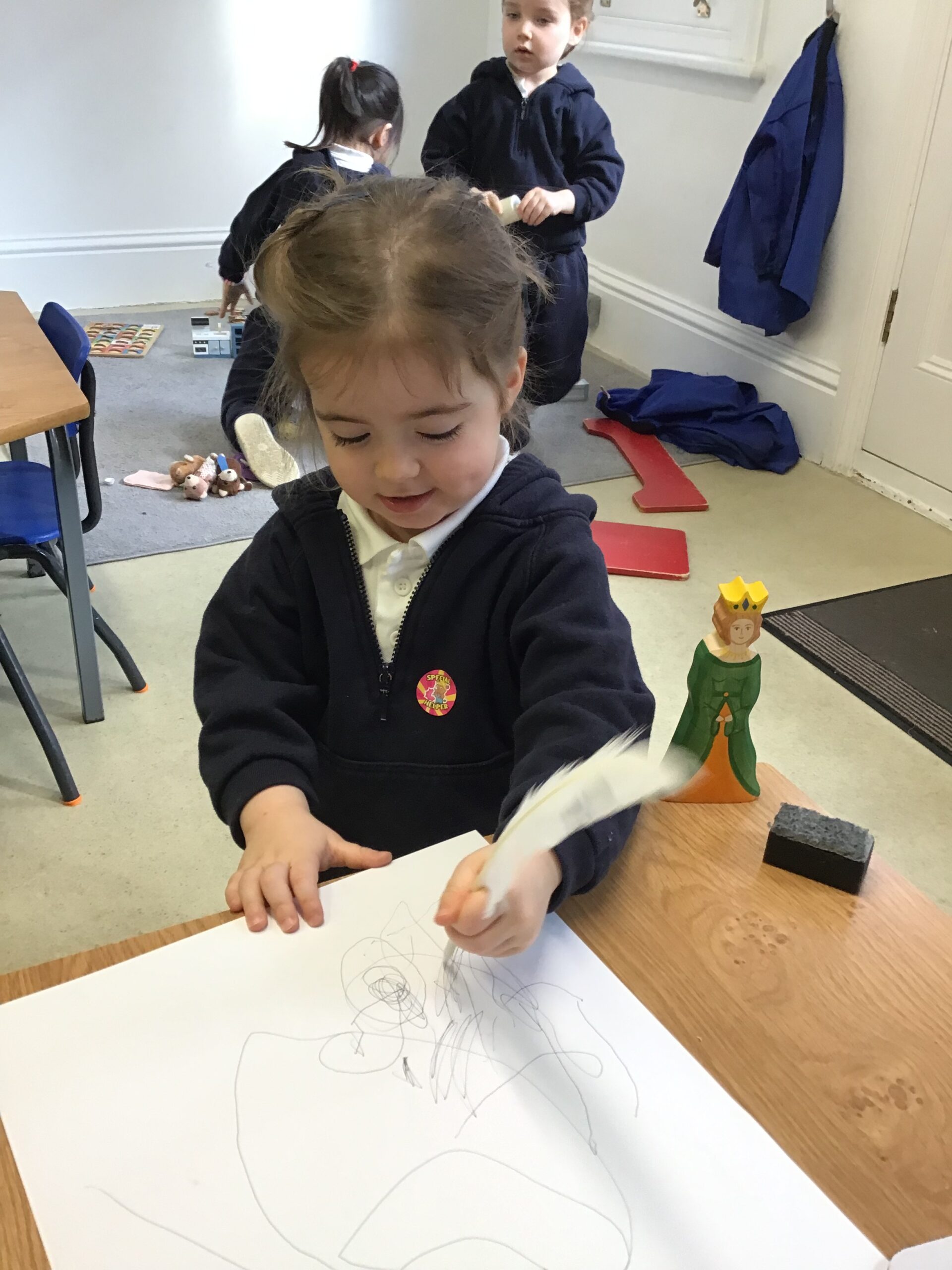 The Bears’ house under the stairs continued to delight all as the children really embraced the fairy tale. There were cries of despair as they saw how Goldilocks had left the home as they retold and re-enacted the story and created their own versions.