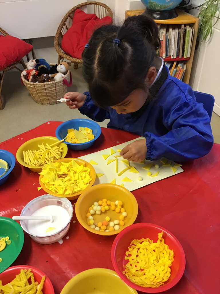 Each child painted a ‘b’ for brown bear. We all drew and cut out a big bowl, a medium sized bowl and a little bowl which was filled with ‘porridge’.