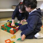 We had a lot of fun building houses using various construction toys both inside and outside. Some homes were sturdier than others, others – well, let’s just say the wolf was well fed!