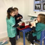 The children were introduced to our new topic ‘Animals’. We focused on the pets we have or would like to have at home. We discussed what we need to do to care for these animals and who would help them if they became poorly. Under the stairs our nook became a home for pet carers and in the letter room, poorly pets were taken care of by a superb team of vets!