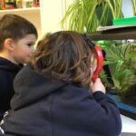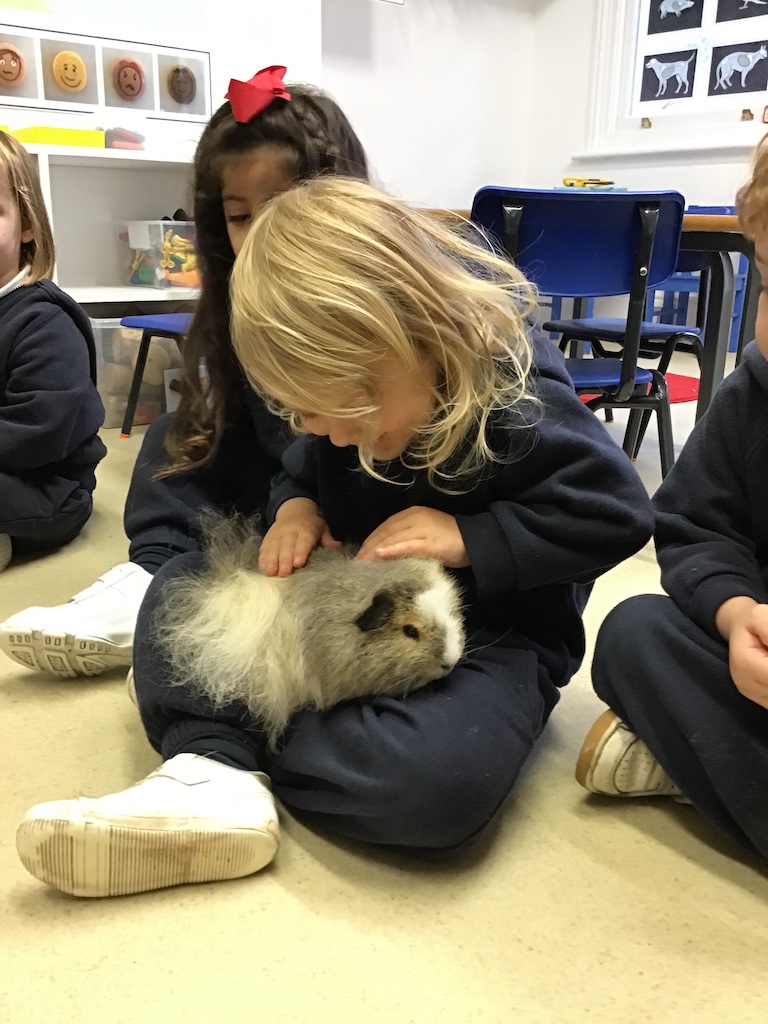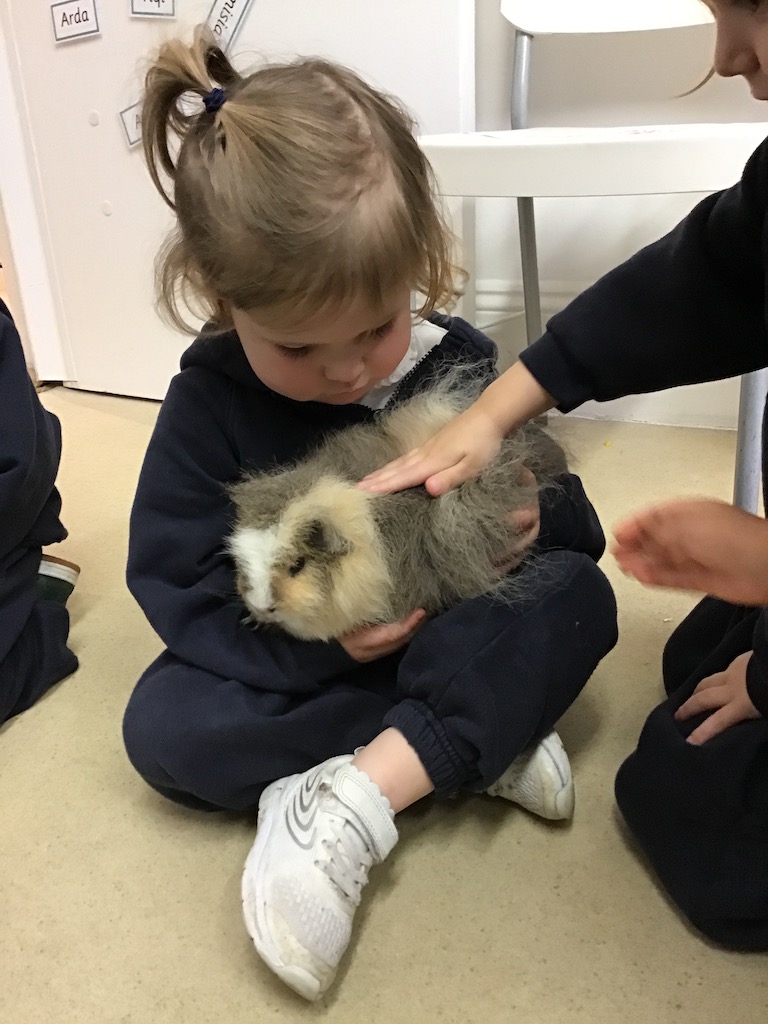 We looked closely at our pets in Nursery, six orange fish and three water snails. On Thursday there was great excitement when Norman and Humphrey, the school Guinea pigs came to visit. Those who wished, held and gently patted these friendly and patient pets!