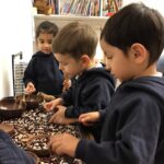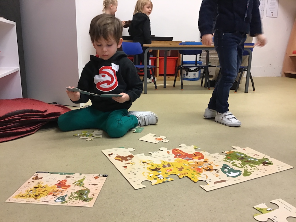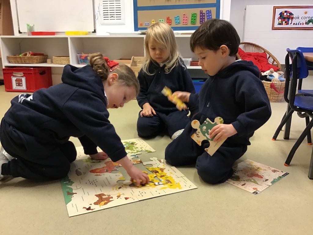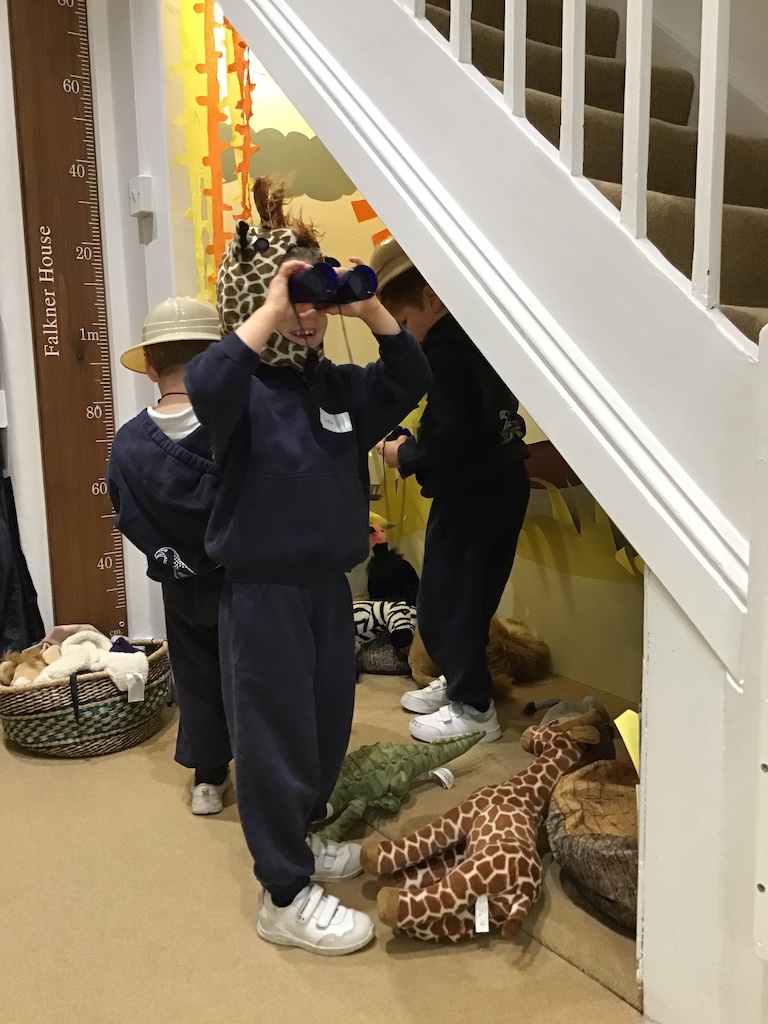 This week in nursery we focused on wild animals from south Africa. We looked at a few of these animal families and were introduced to some of the different collective nouns ranging from the familiar pride of lions and herd of elephants to the more unusual, dazzle of zebras and clan of hyenas. Under the stairs our nook transformed into the African plains. There was a lot of laughter as the children dressed as either wild animals or explorers, watching the wildlife through binoculars. Hyena songs could be heard coming from the number room as too the song from the book ‘The Ugly Five’ by Julia Donaldson, ‘Handa’s Surprise’ by Eileen Browne was retold using finger puppets. In the letter room each child drew a zebra and in both rooms the world globes and floor puzzles were scoured as we searched for the African continent in search of South Africa.