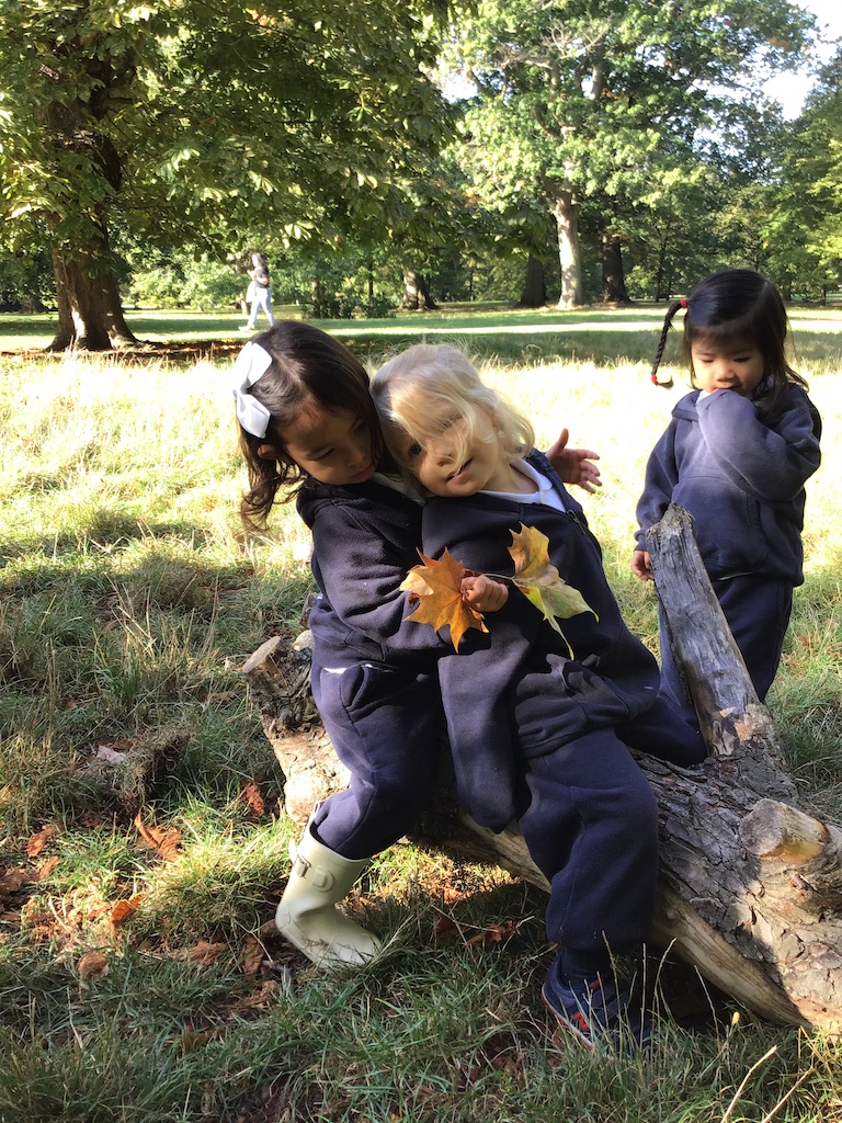 There was much excitement on Tuesday as we took the school bus from Brechin Place to Kensington Gardens for our autumn adventure. Fun was had by all as we searched for and collected natural treasures we found in the park. To the delight of both the children and their teachers we came upon fallen trees. Most clambered up and either walked or crawled along the trunk before leaping off the end. We enjoyed spotting robins and crows, the odd spider web and giant slug and watching the squirrels digging in the ground and racing up trees.